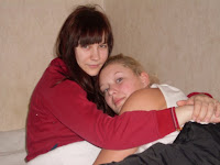 Once again we're in bed together. Here she is listening to the beating of my heart. What a nice image.
